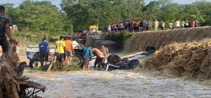 पंजाब, दिल्ली और नोएडा के पर्यटकों की कार शुक्रवार सुबह ढेला नदी के तेज बहाव में बह गई। हादसे में कार सवार छह महिलाओं समेत नौ लोगों की मौत हो गई। इनमें एक स्थानीय युवती भी शामिल है जबकि उसकी बहन घायल हुई है। बृहस्पतिवार की रात सभी लोग एक रिजॉर्ट में रुके थे।नैनीताल जिले के रामनगर से 12 किमी दूर ढेला गांव स्थित कॉर्बेट स्माल टाउन होटल एंड रिजॉर्ट में पटियाला पंजाब के आठ पर्यटक बृहस्पतिवार शाम चार बजे आए थे। शुक्रवार सुबह पांच बजे रिजॉर्ट से चेकआउट कराने के बाद दो स्थानीय महिलाओं के साथ पर्यटक अर्टिगा कार (पीबी01सी-6089) से लौट रहे थे। रिजॉर्ट से 300 मीटर की दूरी पर पहुंचे तो ढेला नदी में तेज बहाव चल रहा था।