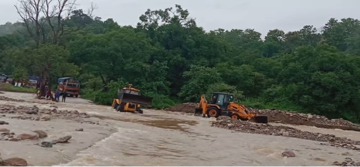 रामनगर (नैनीताल)। बारिश के चलते धनगढ़ी नाला शुक्रवार को उफान पर आ गया। इससे हाईवे पर दो घंटे यातायात बाधित रहा। इस दौरान एक एबुंलेंस भी फंस गई, हालांकि एंबुलेंस में मरीज नहीं था। प्रशासन की टीम मौके पर डटी रही। पानी का बहाव कम होने पर आवागमन सुचारू हो सका। बृहस्पतिवार रात से हो रही बारिश से कुमाऊं और गढ़वाल को जोड़ने वाले नेशनल हाईवे 309 पर स्थित धनगढ़ी नाला शुक्रवार सुबह सात बजे उफान पर आ गया। इससे रामनगर से पहले नाले के दोनों ओर का यातायात रुक गया। मोहान से लेकर सुंदरखाल तक पर्वतीय मार्गों पर आवागमन करने वाले लोग जाम में फंस गए। जलस्तर कम होने पर एनएच और स्थानीय प्रशासन ने जेसीबी से मार्ग दुरुस्त कराया। नायाब तहसीलदार डीसी मिश्रा ने बताया कि नाले में पानी का बहाव कम होने पर यातायात सुचारू किया गया है। नाले पर पुलिस व प्रशासन की टीम तैनात की गई है। इधर, भाजपा नेता गणेश रावत ने कुमाऊं आयुक्त और डीएम से मार्ग के स्थायी सुधारीकरण की मांग की है।