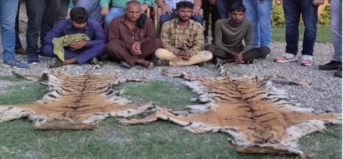 बाघ की दो खालों के साथ चार तस्कर गिरफ्तार