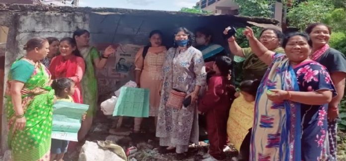 महंगाई के विरोध में महिलाओं ने डबल इंजन सरकार का पुतला फूंका