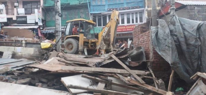 नैनीताल। जिला प्रशासन ने मल्लीताल राम सेवक सभा परिसर के सौंदर्यीकरण कार्य में आड़े आ रहीं पांच दुकानों पर बुधवार को जेसीबी चलवा दी। इनमें सब्जी के तीन फड़ और दो पक्की दुकानें हैं। इस दौरान दुकान स्वामियों ने कार्रवाई का विरोध किया। नैनीताल शहर के अलग-अलग हिस्सों को पारंपरिक कुमाऊंनी शैली में संवारा जा रहा है। इसी क्रम में राम सेवक सभा और इसके आसपास के क्षेत्र को भी संवारने की योजना है। यहां सौंदर्यीकरण कार्य में तीन फड़ और दो पक्की दुकानें आड़े आ रही थीं जिस पर प्रशासन ने पूर्व में दुकान स्वामियों को खुद ही अपनी दुकान हटा लेने को कहा था।