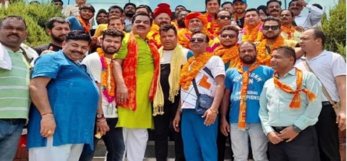 रुद्रपुर। श्री अमरनाथ सेवा मंडल के बैनर तले तीन जुलाई को बाबा बर्फानी के दर्शन करने गए श्रद्धालुओं के यहां लौटने पर रुद्रपुर रेलवे स्टेशन पर भाजपा व कांग्रेस कार्यकर्ताओं ने भव्य स्वागत किया। सोमवार को गरीब रथ ट्रेन से श्रद्धालु रुद्रपुर रेलवे स्टेशन पहुंचे। पूर्व विधायक राजकुमार ठुकराल, भाजपा नेता भारत भूषण चुघ के साथ बड़ी संख्या में भक्तों ने यात्रियों का माल्यार्पण कर स्वागत किया। वहीं कांग्रेसियों ने भी रेलवे स्टेशन पहुंचकर अमरनाथ यात्रियों का भव्य स्वागत किया। कांग्रेस जिलाध्यक्ष हिमांशु गाबा ने कहा कि बाबा बर्फानी की कृपा से रुद्रपुर शहर के सभी तीर्थयात्री सकुशल लौटे हैं।
